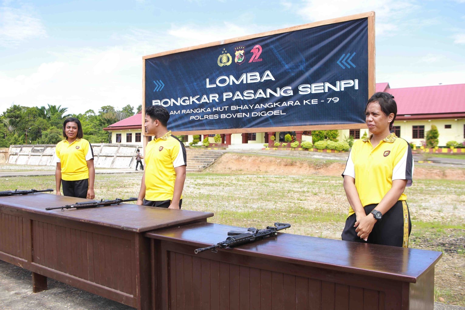 Lomba Bongkar Pasang Senjata Api Meriahkan HUT Bhayangkara ke-79 di Polres Boven Digoel