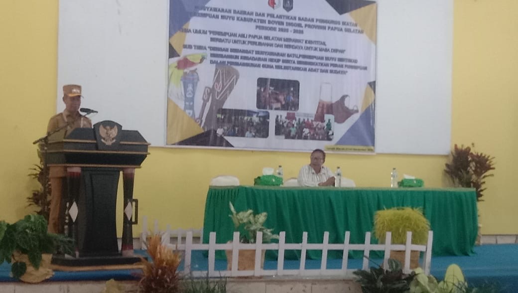 Kabar Digoel – Musyawarah Daerah sekaligus pelantikan Dewan Pengurus Ikatan Perempuan Muyu Kabupaten Boven Digoel berlangsung penuh semangat dan kekeluargaan. Kegiatan ini menjadi momentum penting bagi perempuan Muyu untuk memperkuat peran dan kontribusi mereka dalam pembangunan daerah.