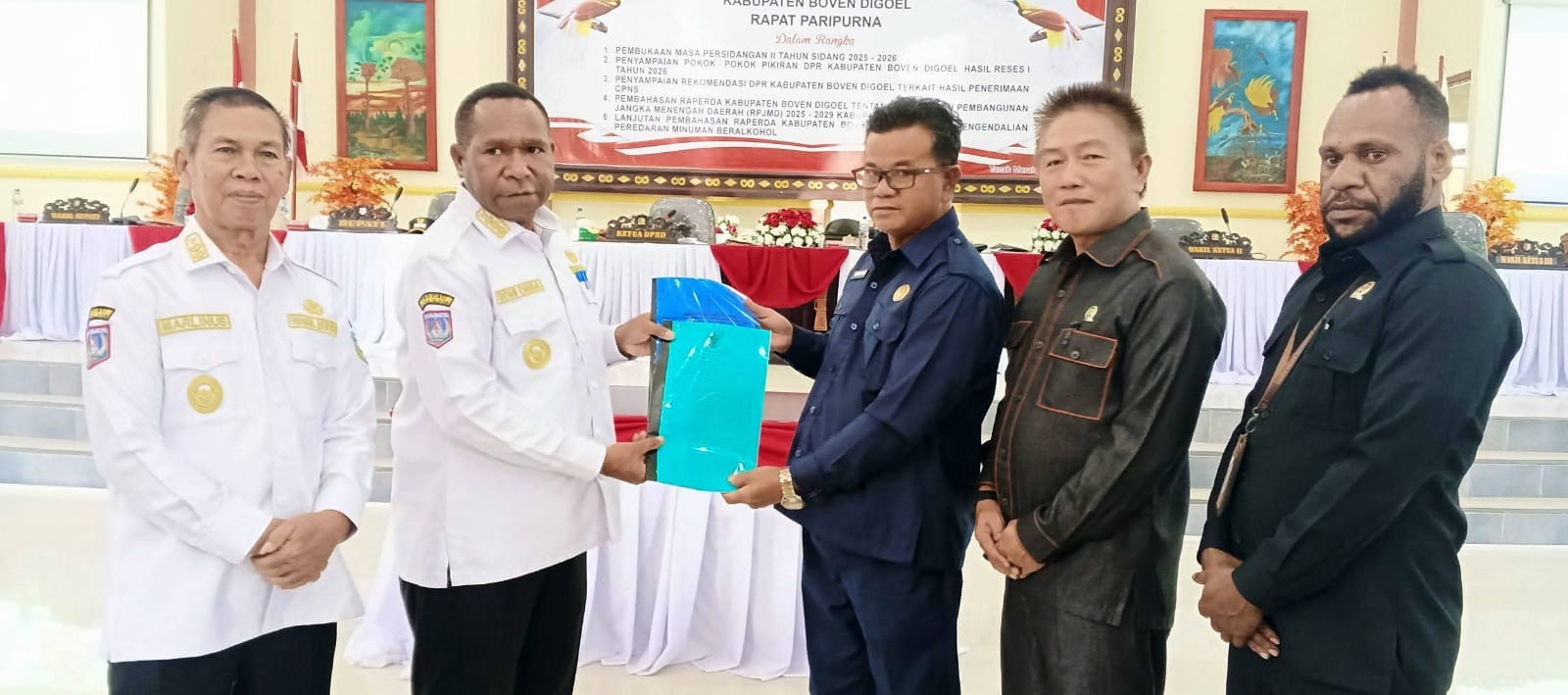 Sementara itu, Bupati Boven Digoel, Roni Omba, menyampaikan bahwa dokumen RPJMD 2025–2029 akan menjadi arah utama pembangunan daerah selama lima tahun ke depan.
